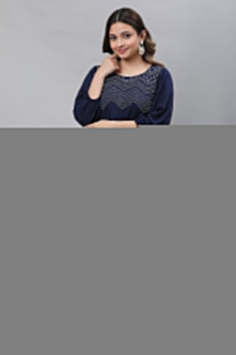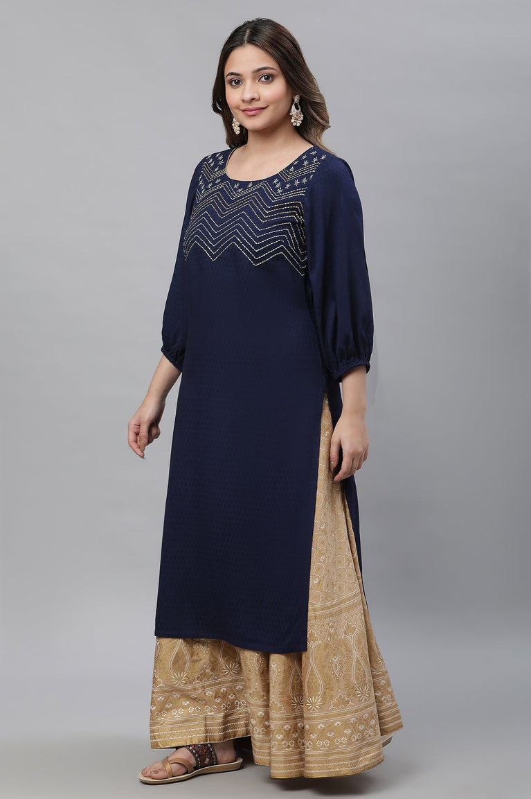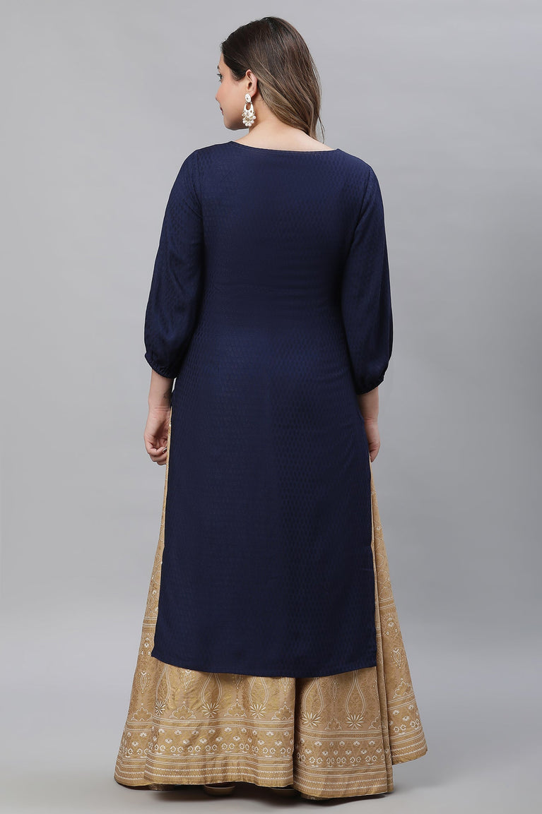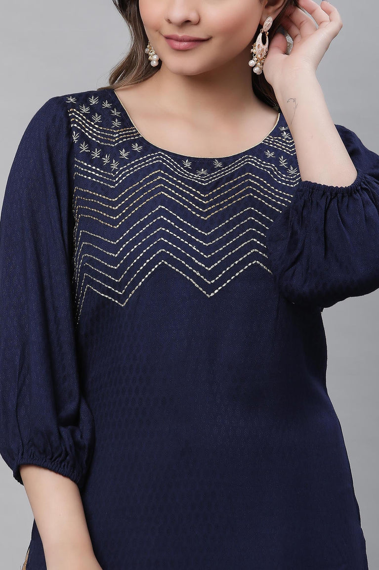 Blue Textured Rayon Embroidered Kurta