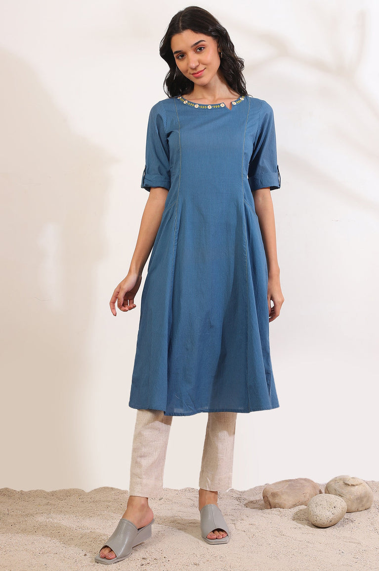Blue Round Neck Striped Liva kurta