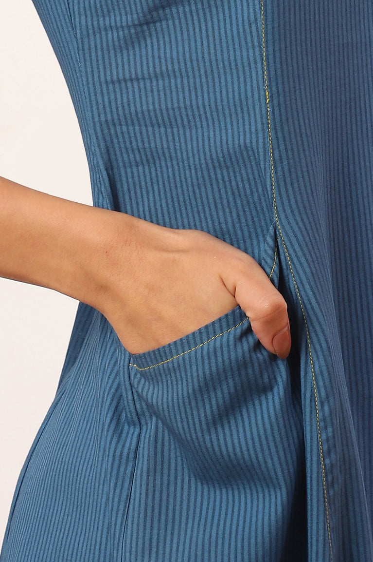 Blue Stripe Cotton Plus Size kurta with Side Buckle