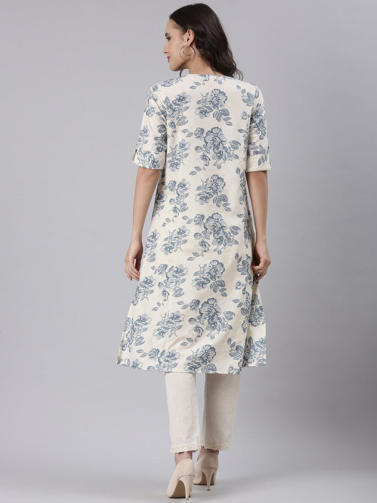 Neeru's Beige Regular Straight Printed Readymade Suits