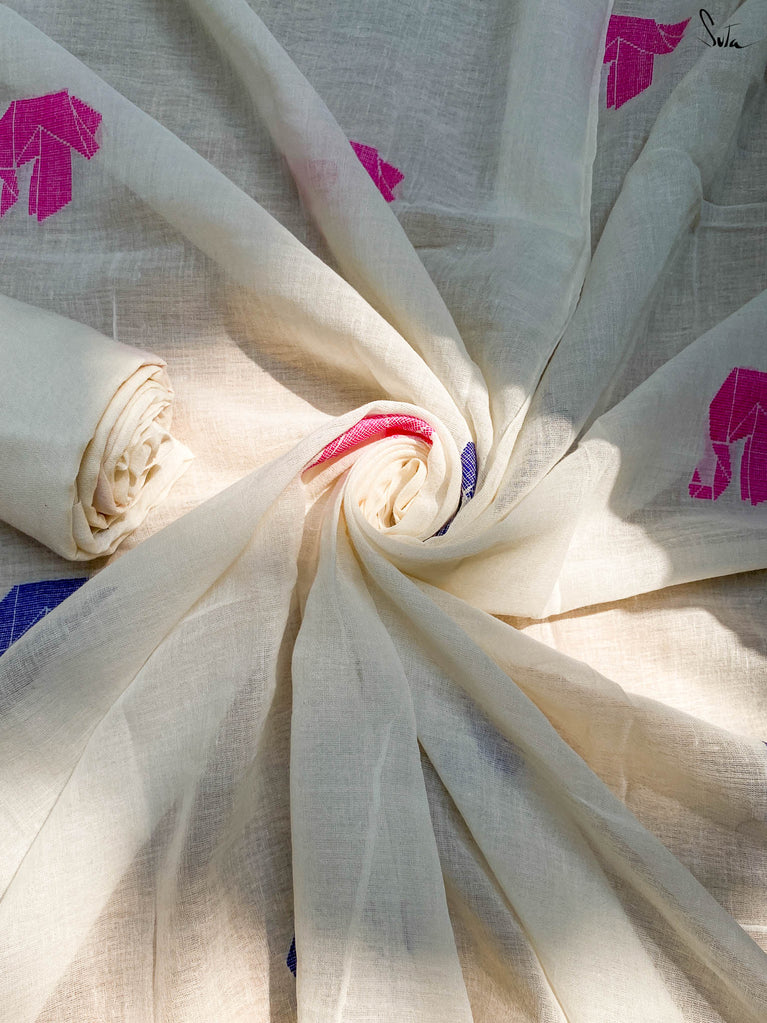 Note: Our mul sarees are slightly transparent, it’s the nature of the fabric and part of its soft, airy charm.