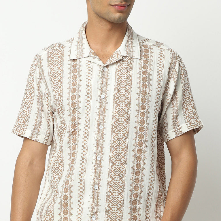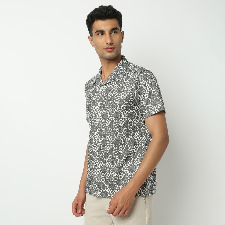 Camp Collar Half Sleeve Relaxed Fit Cuban Printed Shirt