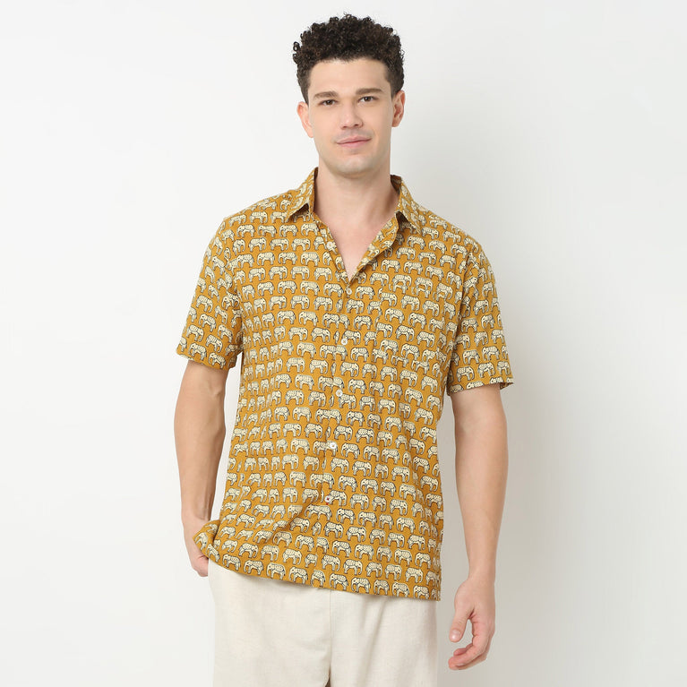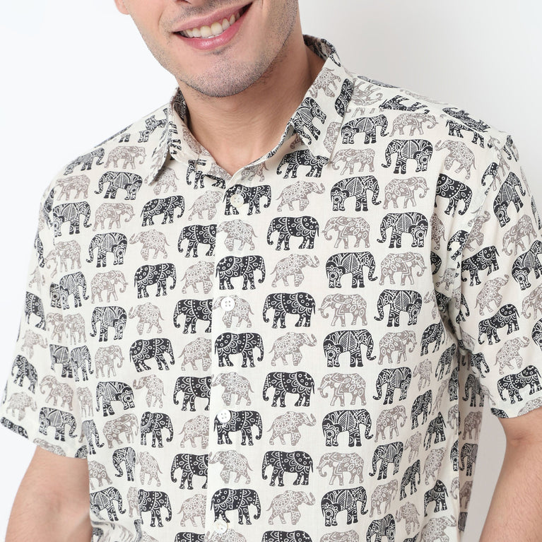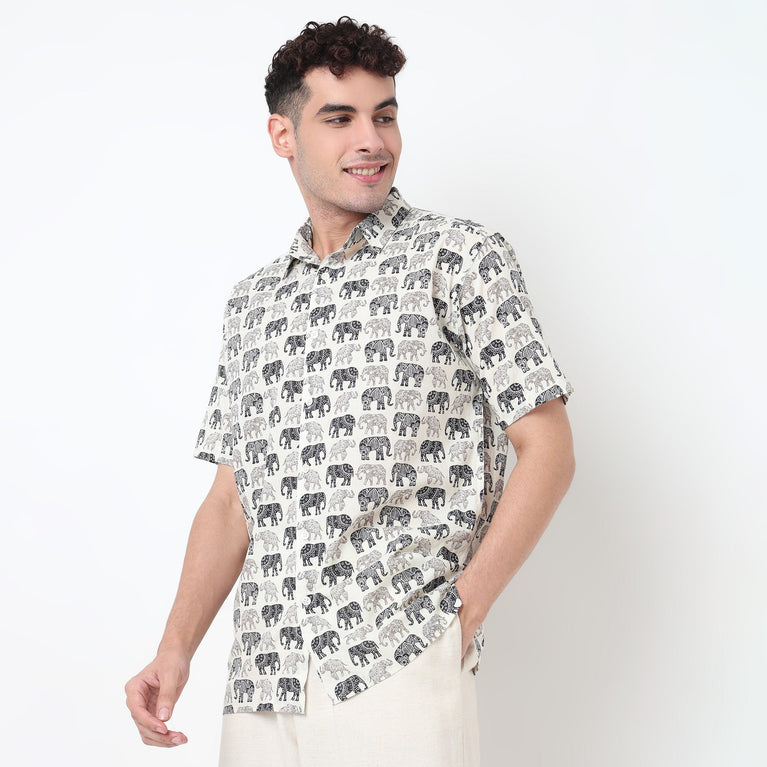 Camp Collar Half Sleeve Short Length Relaxed Fit Cuban Printed Shirt