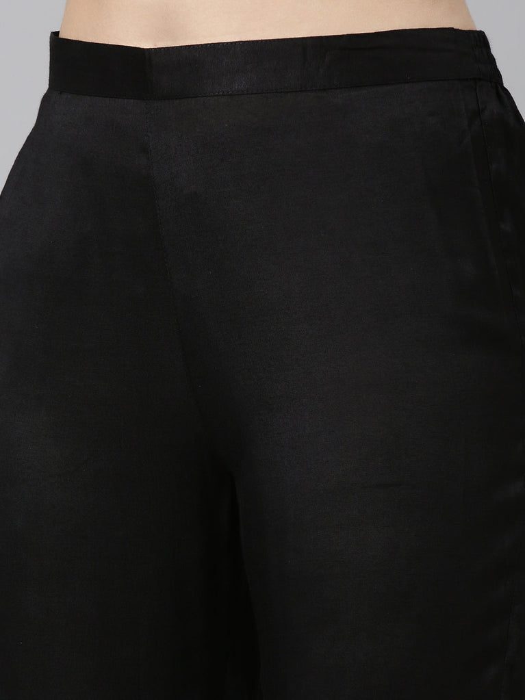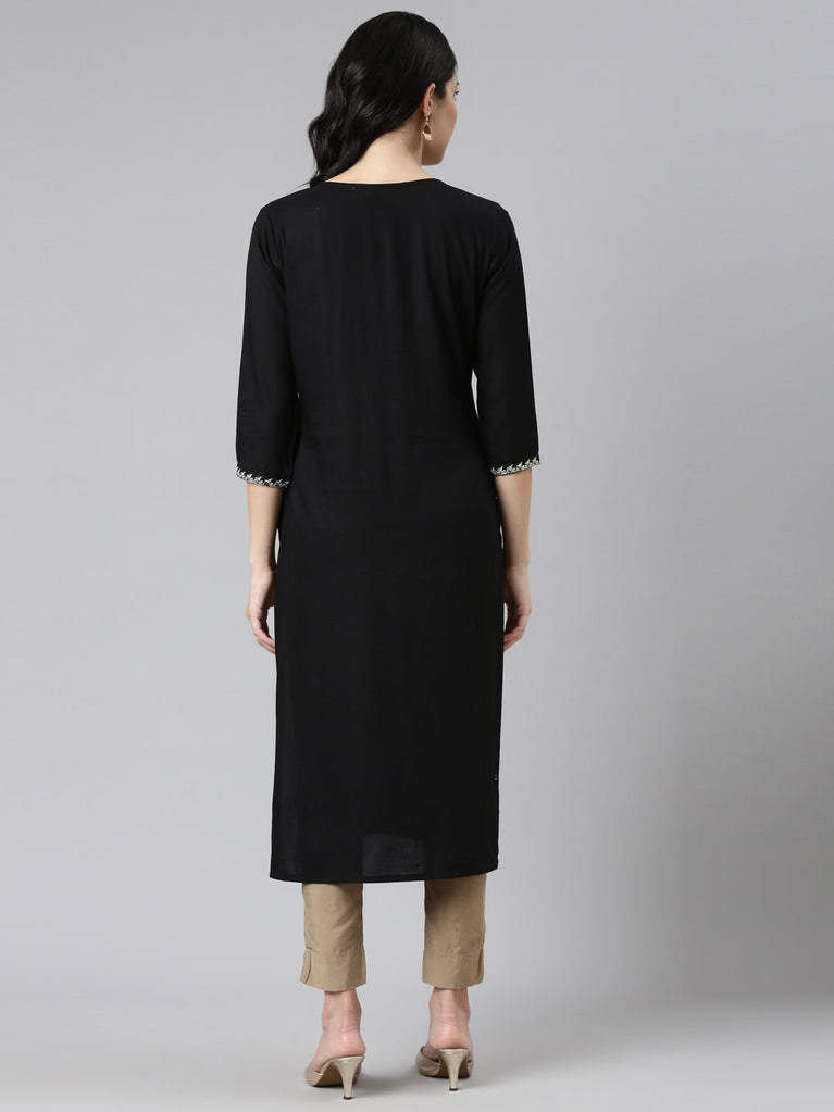 Neeru's Black Straight Straight Cotton Silk Kurtas