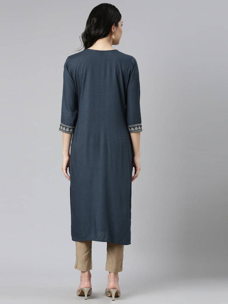 Neeru's Blue Regular Straight Embroidered Kurtas
