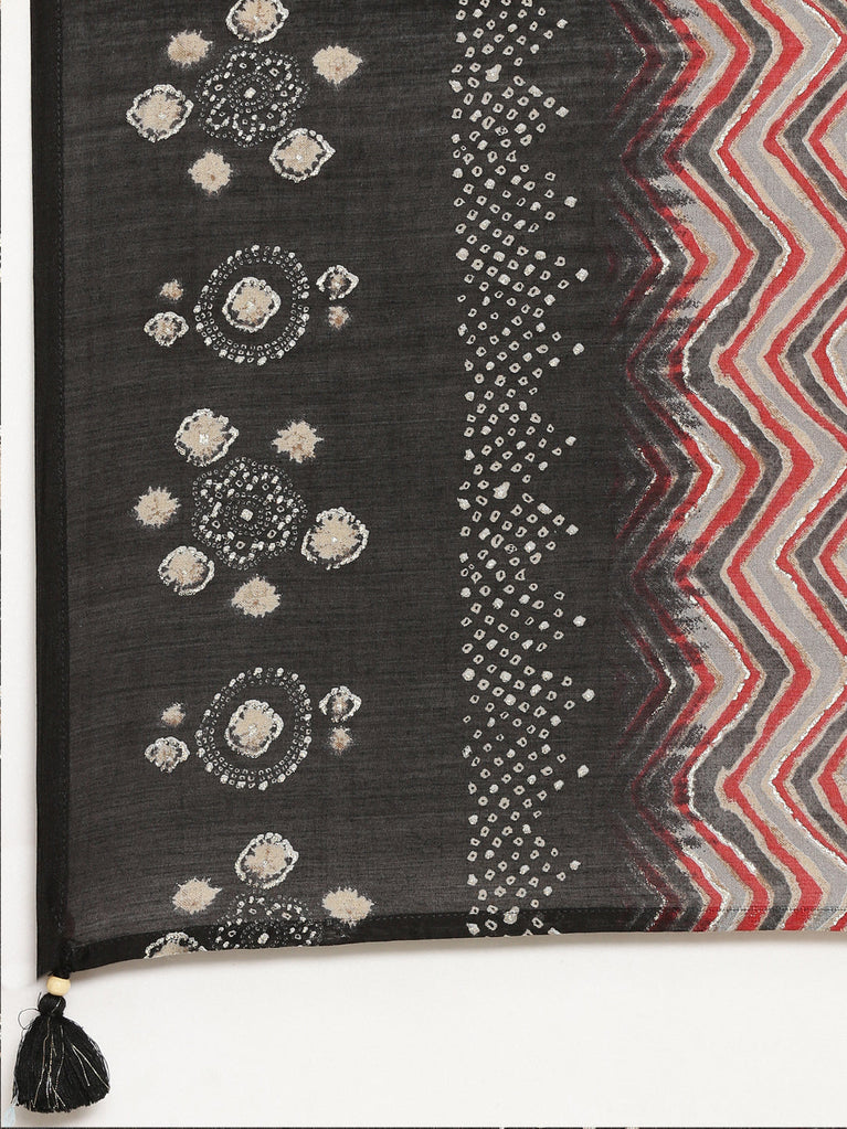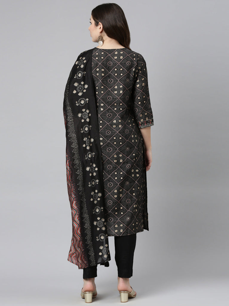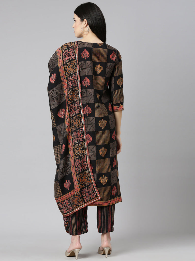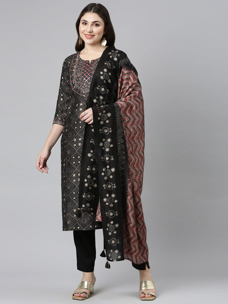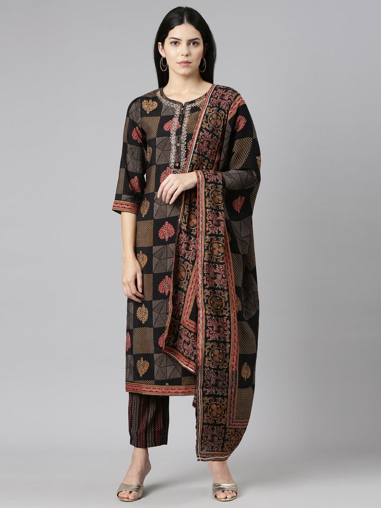 Neeru's Presents The Ultimate In Luxury - A Timeless Ensemble Crafted From Black Regular-Straight Fabric, Featuring An Enchanting Print And Accompanied With Trousers And A Dupatta To Complete The Look.
