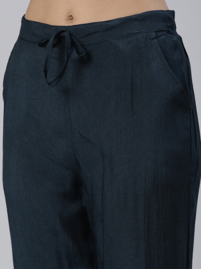 Neeru's Blue Regular Straight Printed Kurta And Trousers