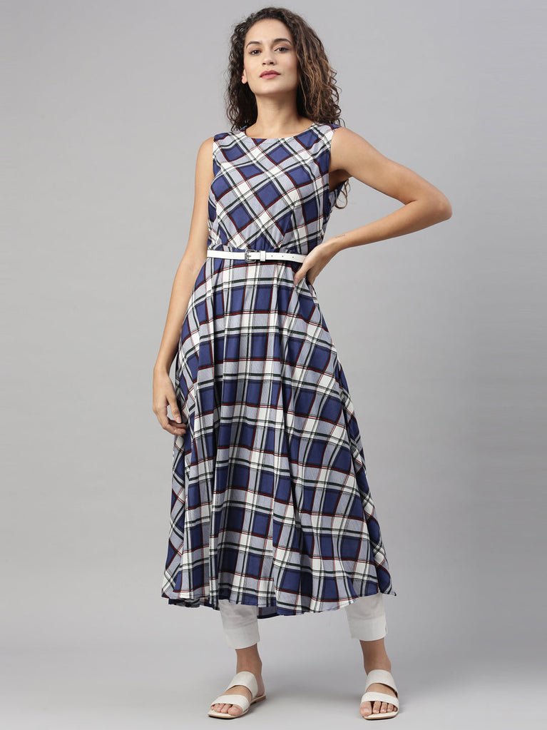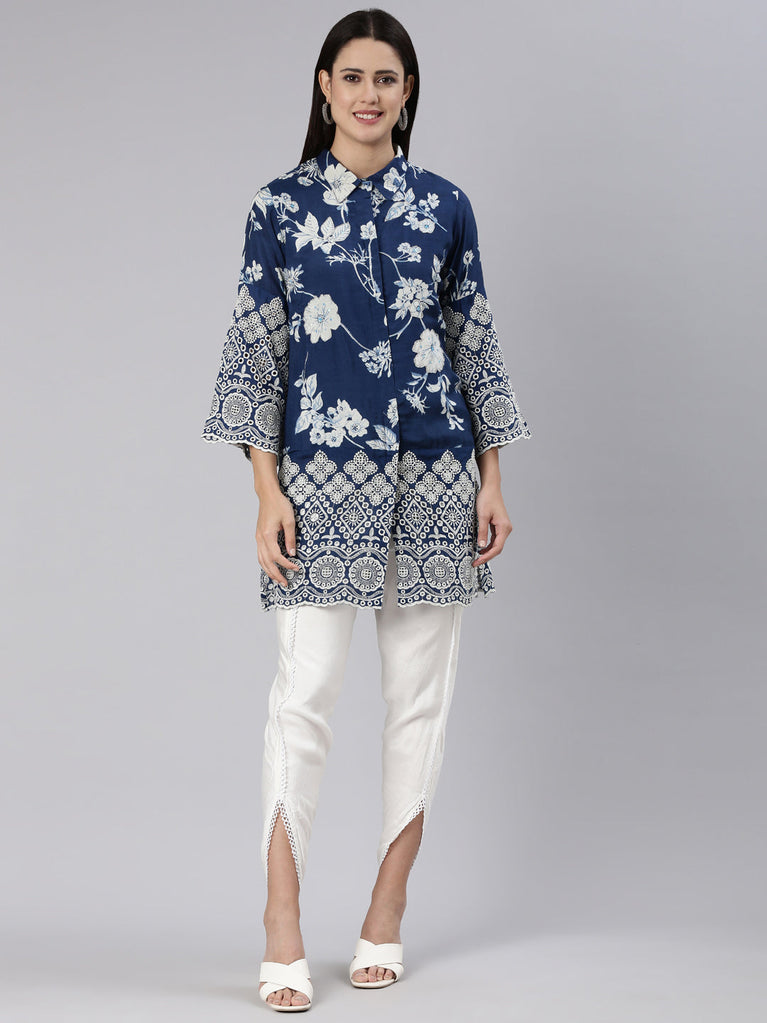 Indulge In The Luxury Of Neeru's Blue Floral Kurtas.