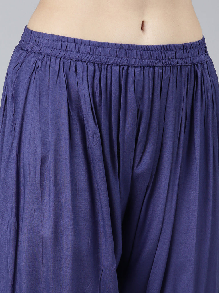 Neeru's Blue Regular Straight Floral Kurta And Trousers With Dupatta