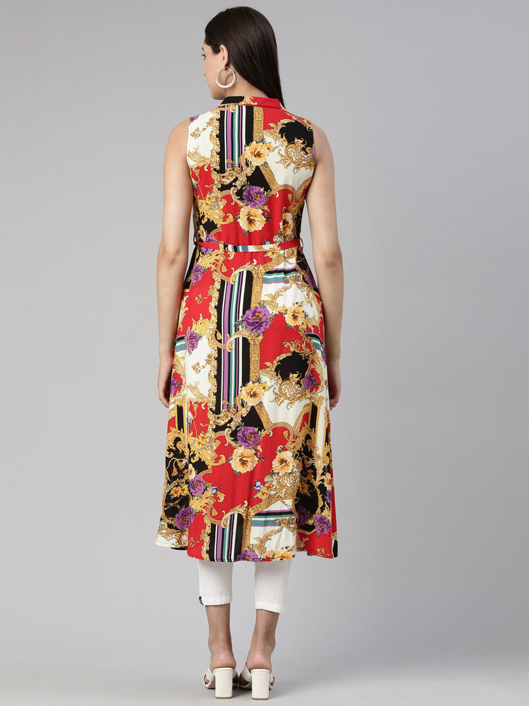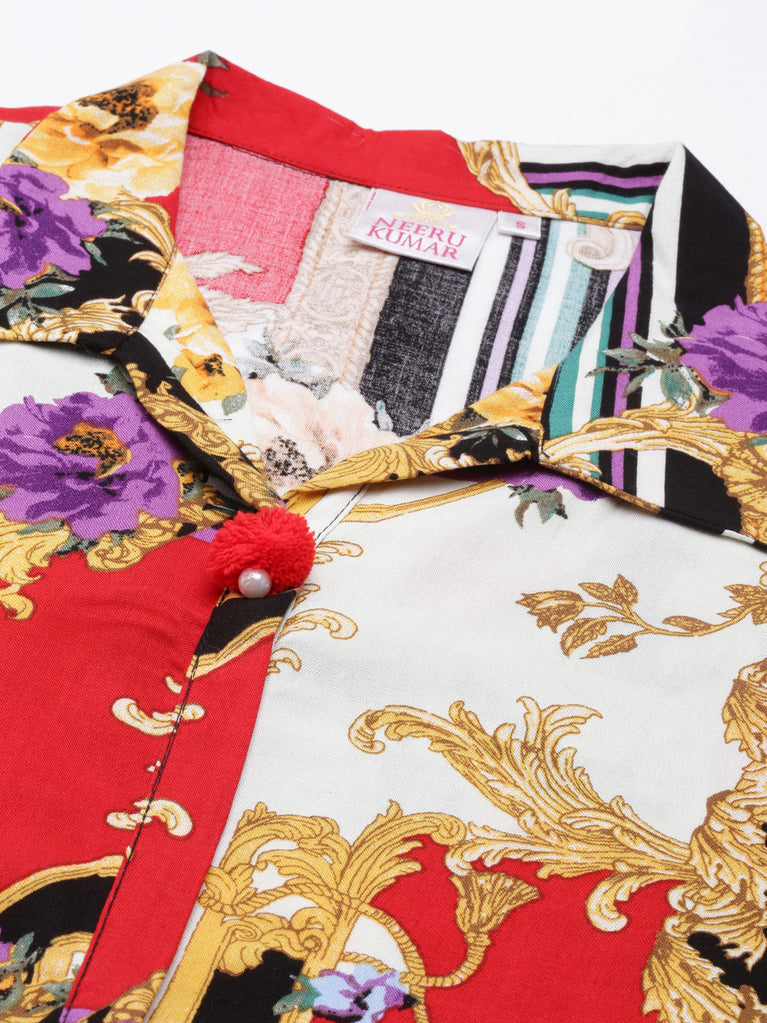 Flaunting A Striking Quirky Print, This A-Line Cotton Silk Kurta From Neeru's Boasts A Luxurious Design That Is Sure To Turn Heads. It Features A Distinctive Shirt Collar, And A Front Slit For An Added Touch Of Style And Femininity. Perfectly Finished With A Flared Hemline, This Sophisticated Piece Will Make A Chic Addition To Any Daily Ensemble.