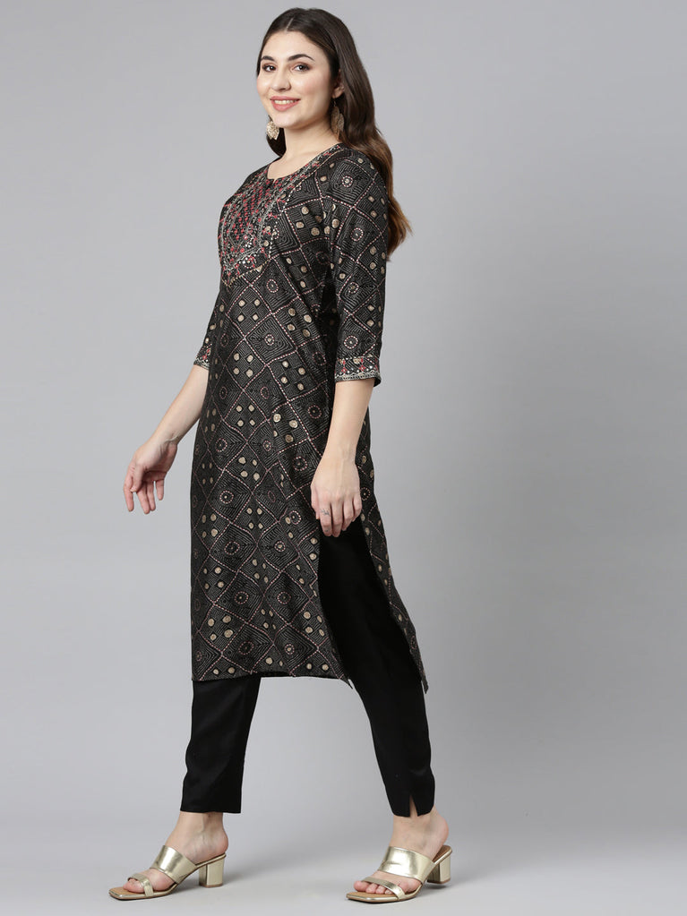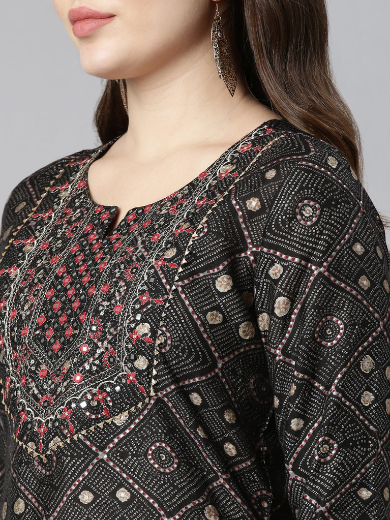 Neeru's Black Straight Casual Printed Dress A Wardrobe Staple That Will Take You Through The Season With Style And Grace. Perfect For Any Occasion, This Gown Is A Must-Have For Every Fashionista! (Plus, You'Ll Be The Talk Of The Town!)