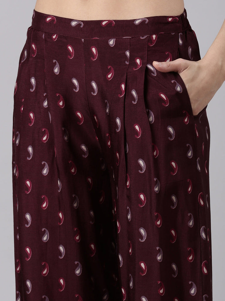 Grape Muslin A Line Cut Three Piece Set