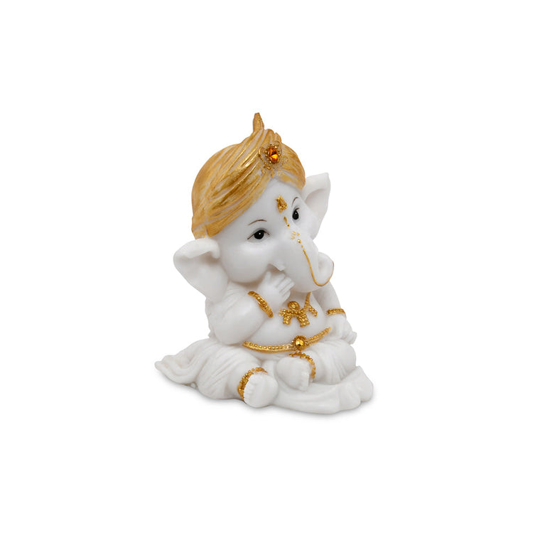 Ganesha Giggling Decorative Polyresin Showpiece (White & Gold)