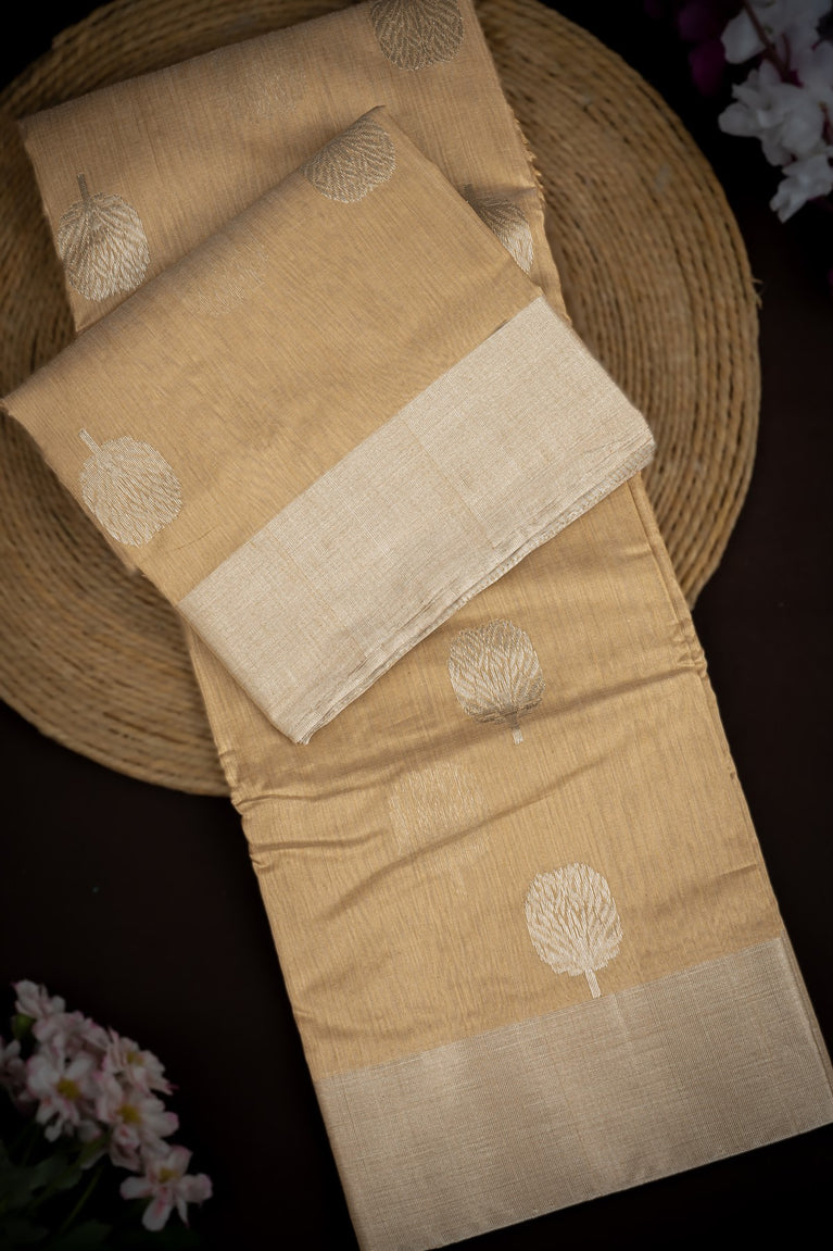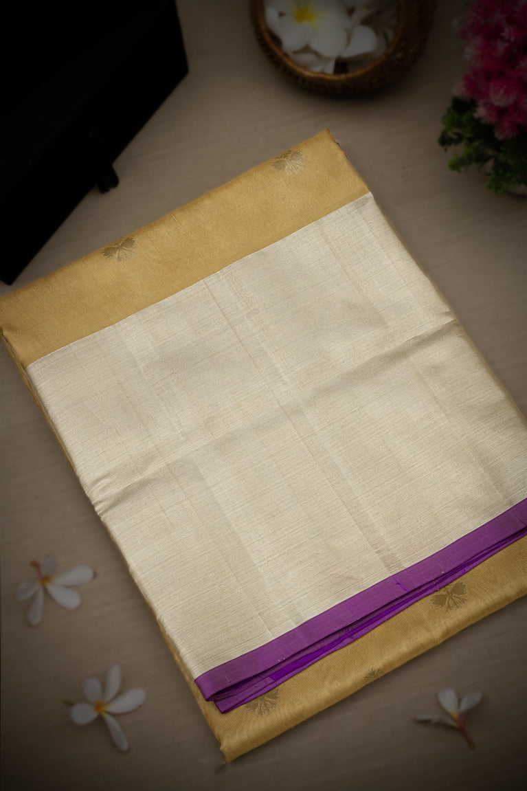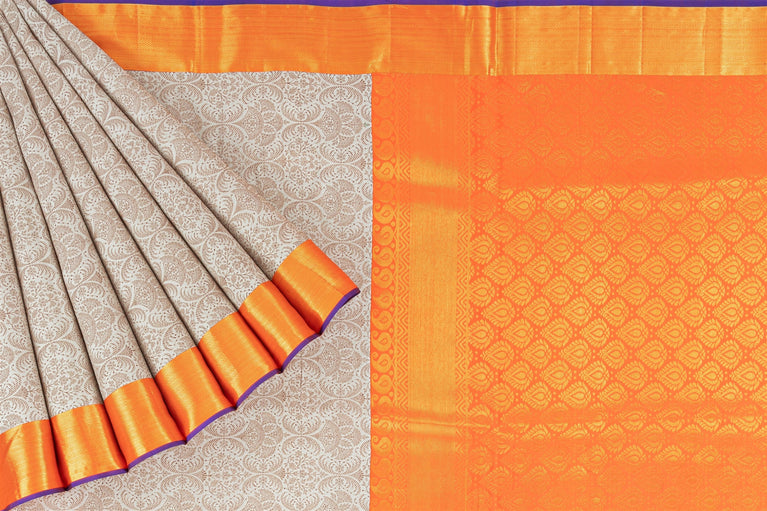 Mandir Beige & Saffron Kanchipuram Buttis Saree