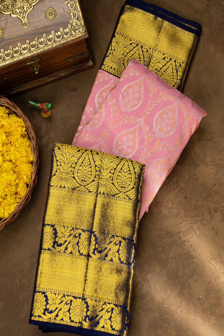 Mandir Baby Pink & Navy Blue Kanchipuram Floral Jaal Saree
