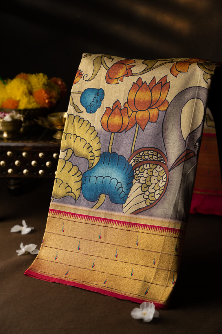 Mandir Baby Pink & Slate Grey Fancy Digital Print Saree