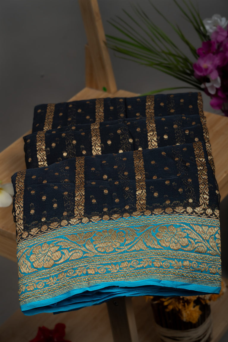 Mandir Aqua Blue & Red Coimbatore Motifs Saree