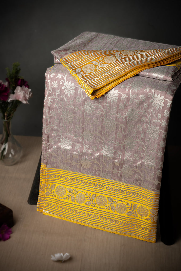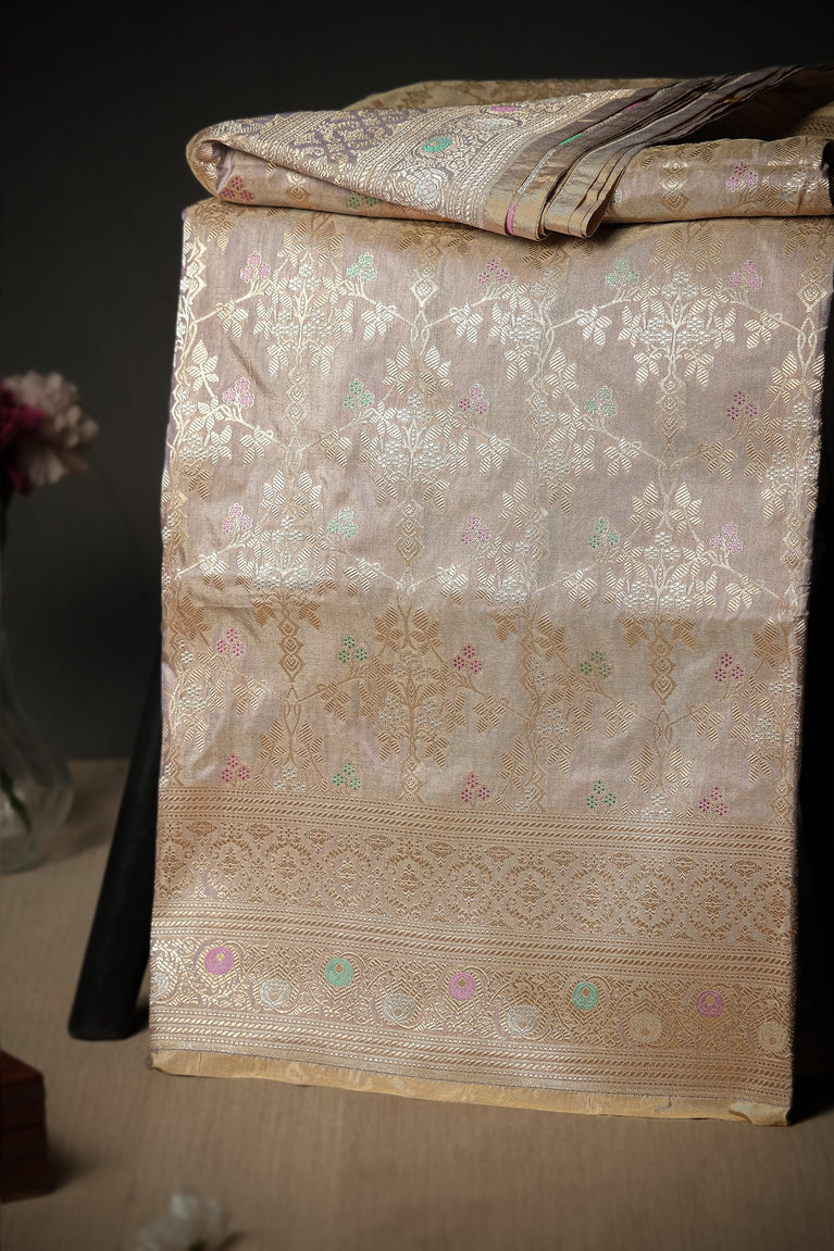 Mandir Beige & Mustard Banarasi Jaal Saree