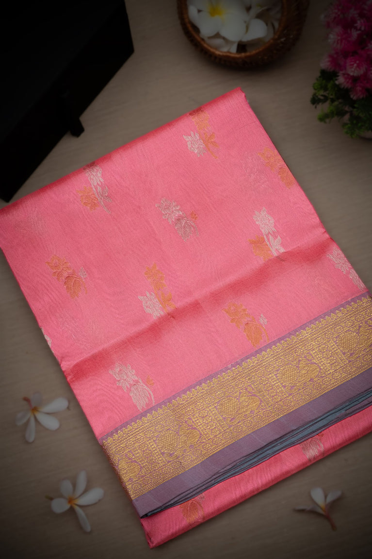 Mandir Baby Pink & Grey Venkatagiri Buttis Saree