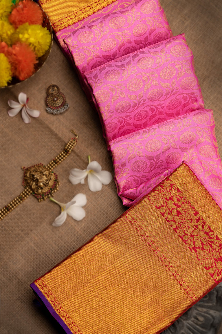 Mandir Blush Pink & Maroon Kanchipuram Jaal Saree