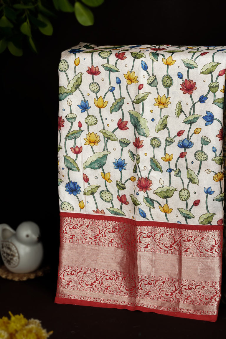 Mandir Cream & Maroon Fancy Digital Print Saree