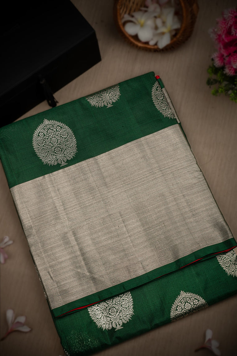 Mandir Bottle Green & Yellow Coimbatore Motifs Saree