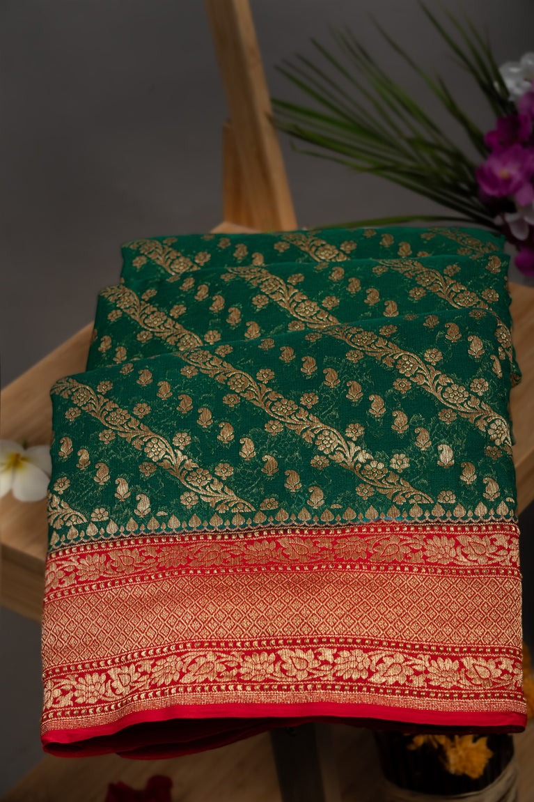 Mandir Gold & Sea Green Venkatagiri Motifs Saree