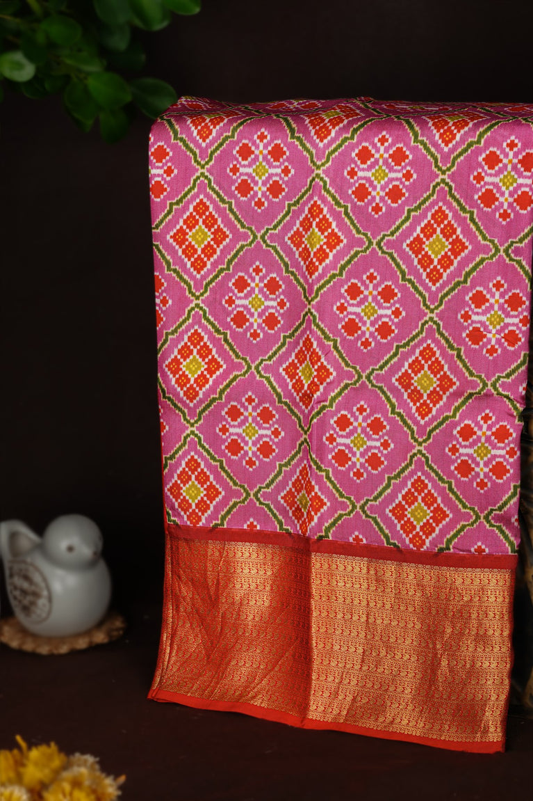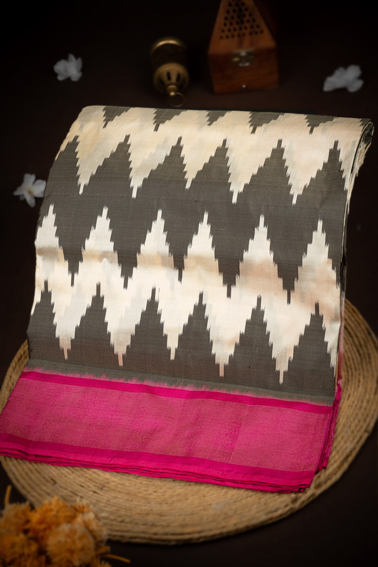 Mandir Grey and Cream & Dark Pink Ikat Ikat Saree