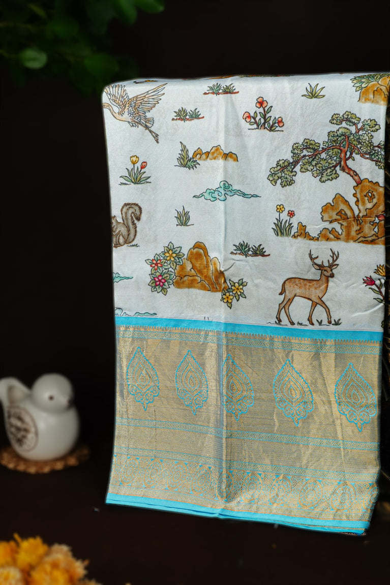 Mandir Light Blue & Sea Blue Fancy Digital Print Saree