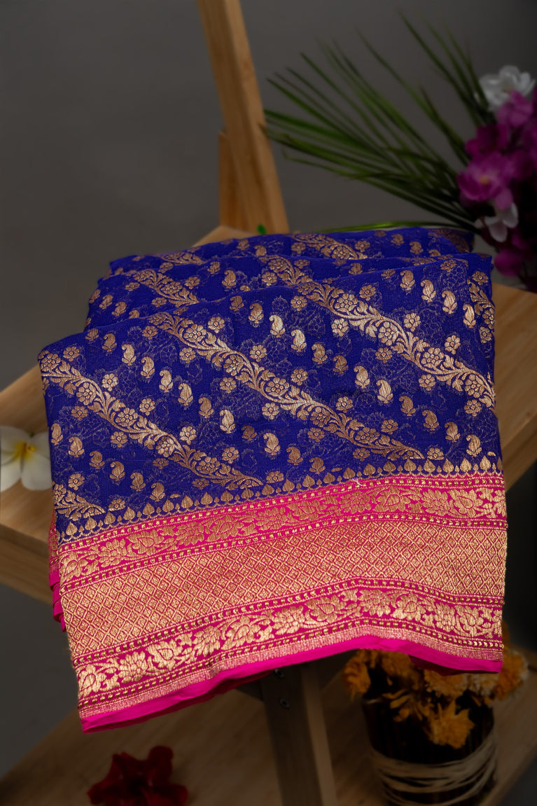 Mandir Royal Blue & Pink Banarasi Jaal Saree