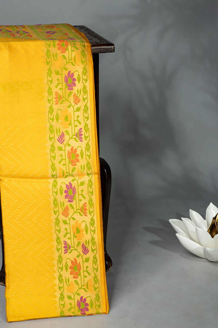 Mandir Yellow & Yellow Kanchipuram Plain Saree