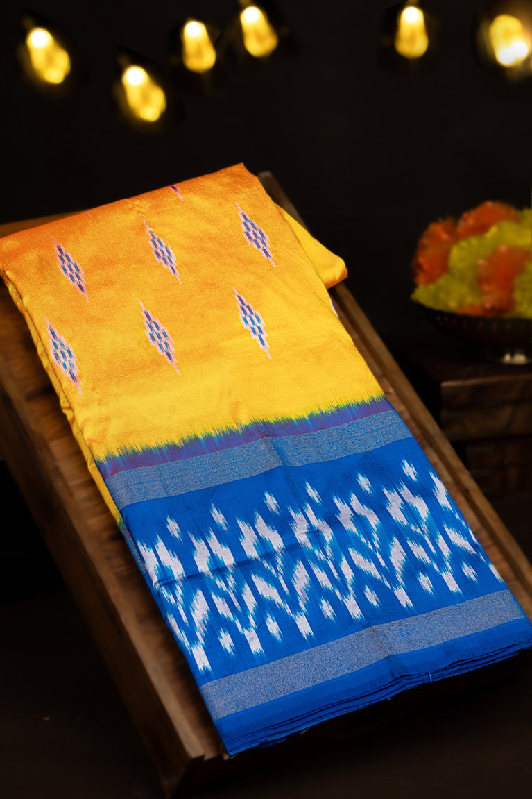 Varamahalakshmi Gold Yellow & Royal Blue Ikat Ikat Saree