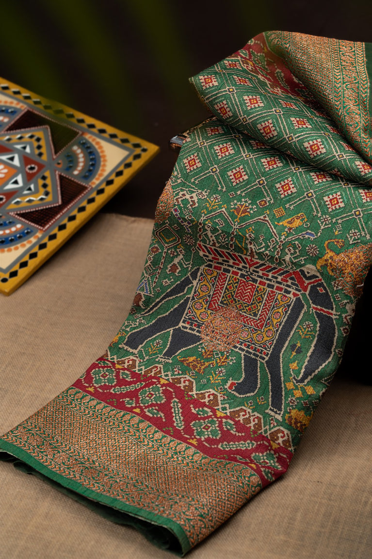 Varamahalakshmi Green & Royal Blue Patola Printed Saree