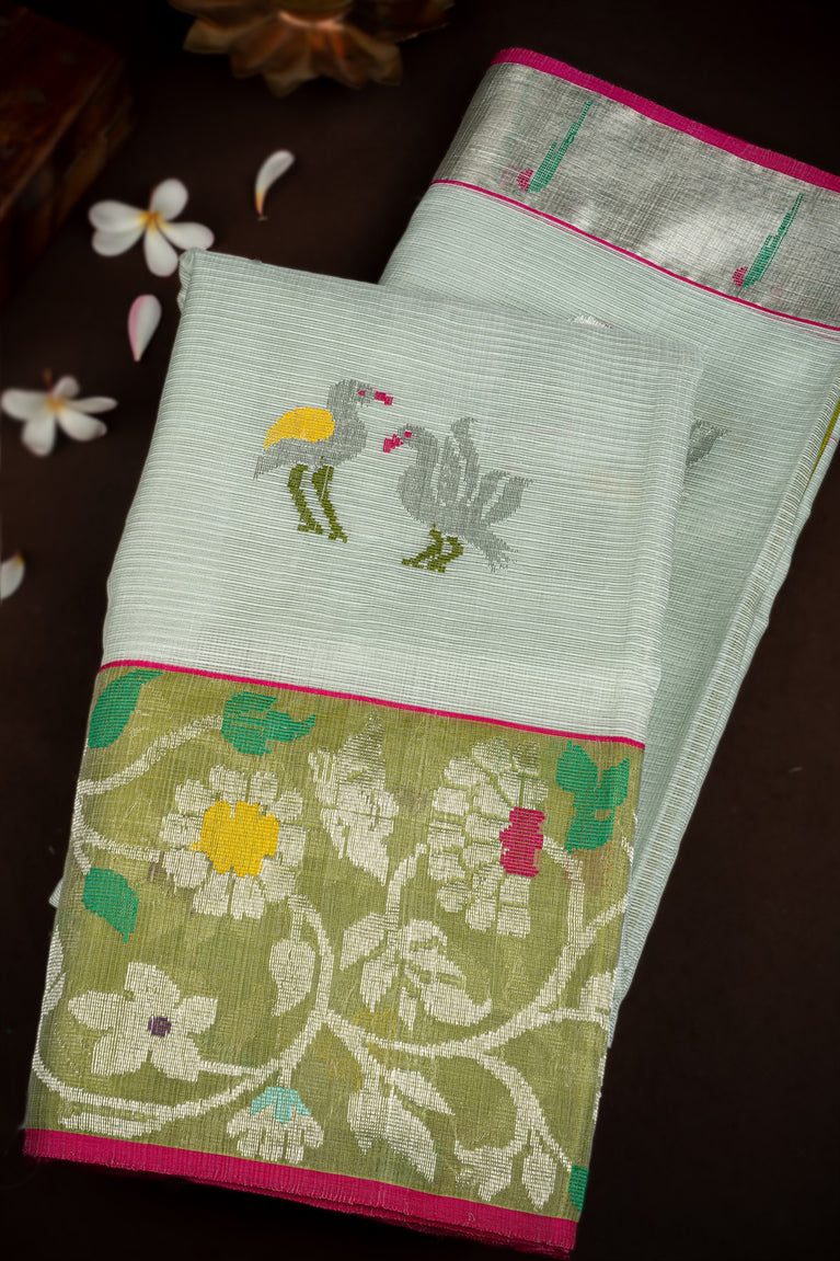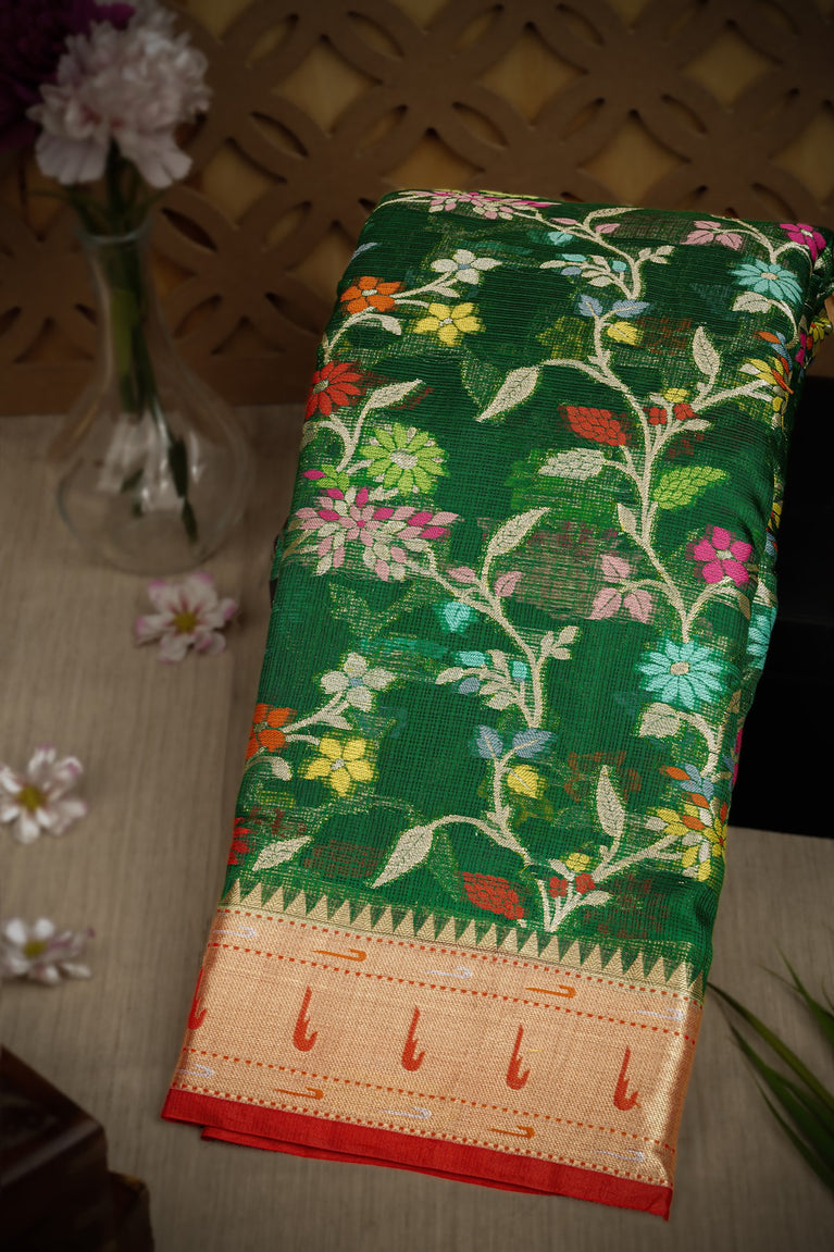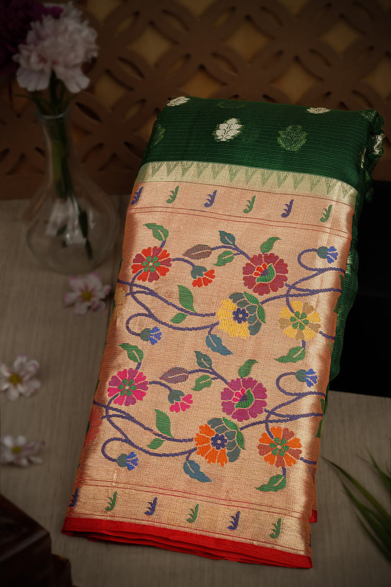 Varamahalakshmi Green & Mehendi Green Zari Kota Motifs Saree