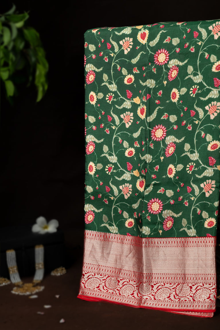 Varamahalakshmi Green & Red Fancy Digital Print Saree