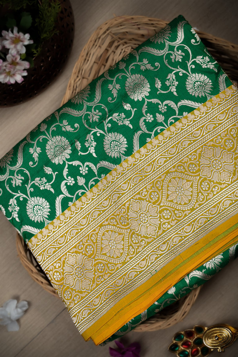 Varamahalakshmi Green & Yellow Banarasi Jaal Saree