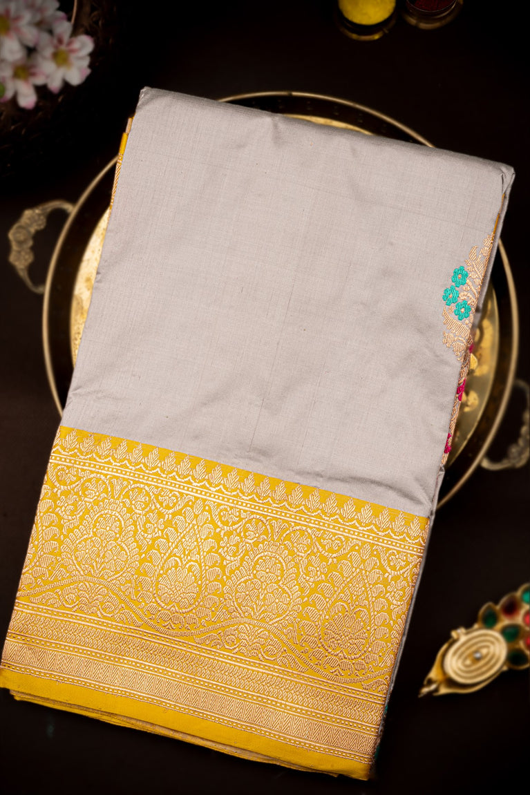 Varamahalakshmi Grey & Mustard Banarasi Buttis Saree