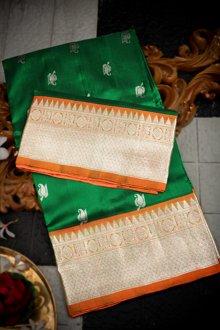 Varamahalakshmi Green & Orange Venkatagiri Buttis Saree