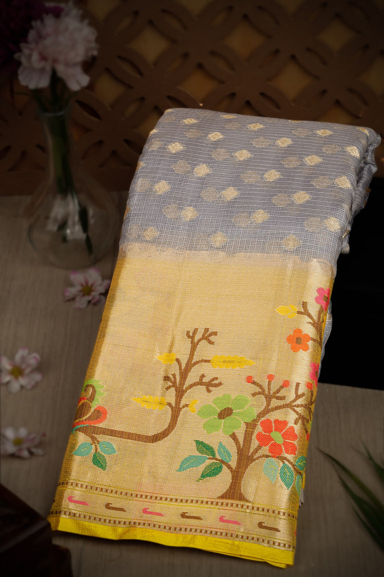 Varamahalakshmi Grey & Yellow Fancy Buttis Saree