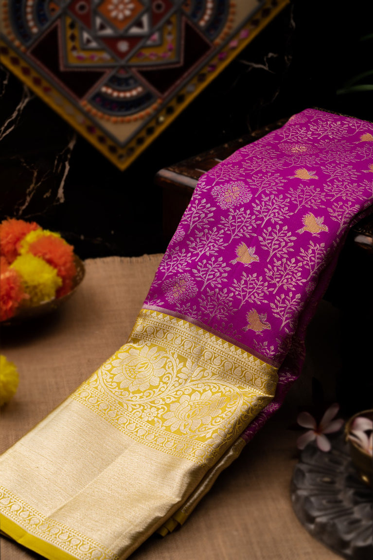 Varamahalakshmi Magenta & Mustard Kancheepuram Brocade Saree