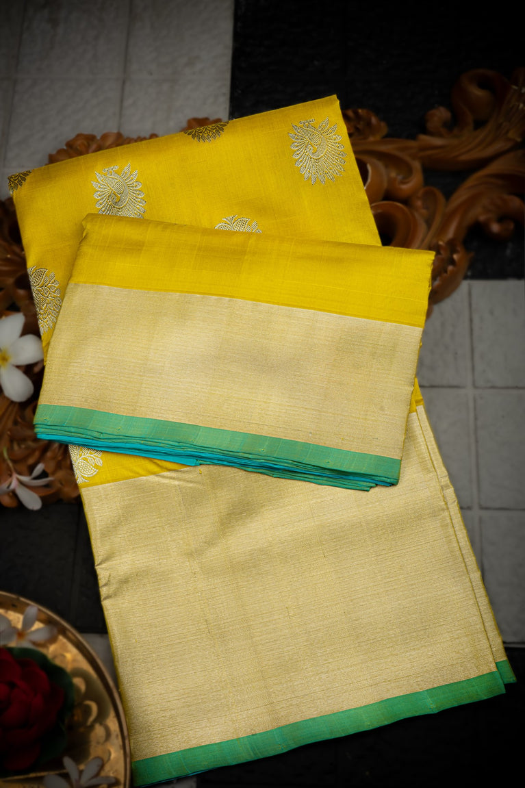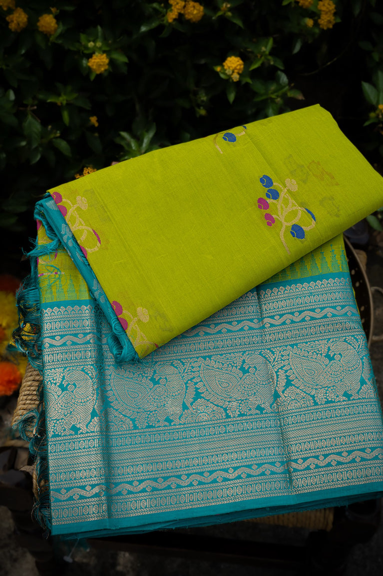 Varamahalakshmi Lime Yellow & Sea Green Venkatagiri Motifs Saree