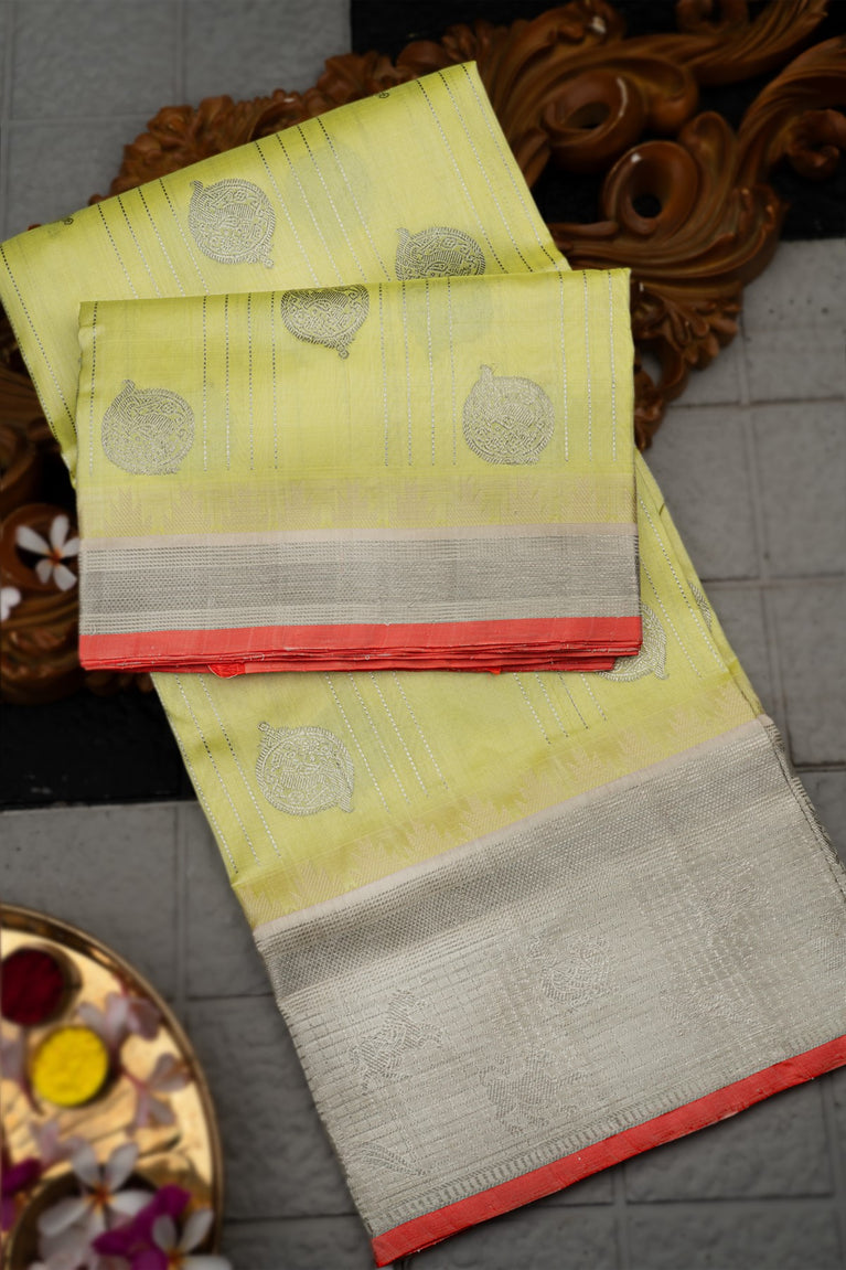 Varamahalakshmi Lime Yellow & Silver Uppada Motifs Saree