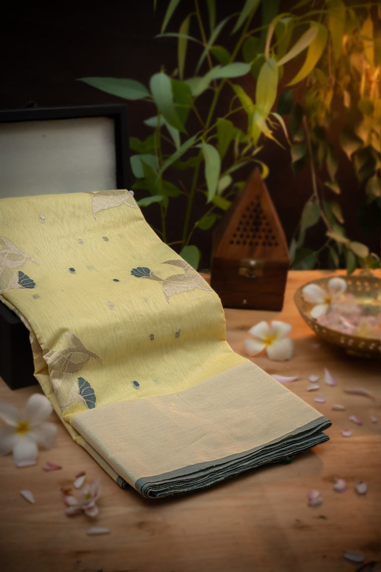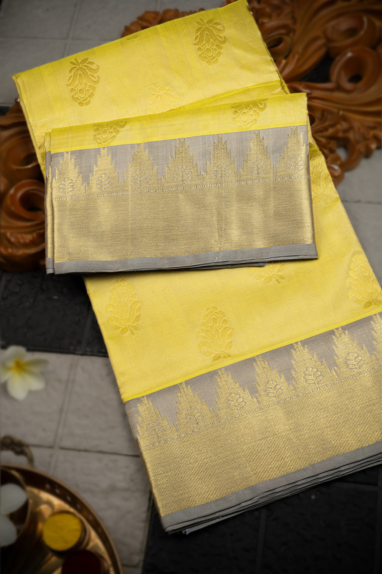 Varamahalakshmi Lime Yellow & Grey Uppada Buttis Saree