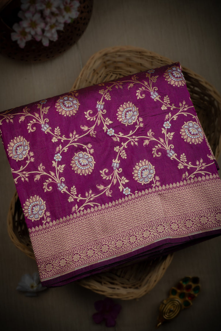 Varamahalakshmi Magenta & Gold Banarasi Floral Jaal Saree