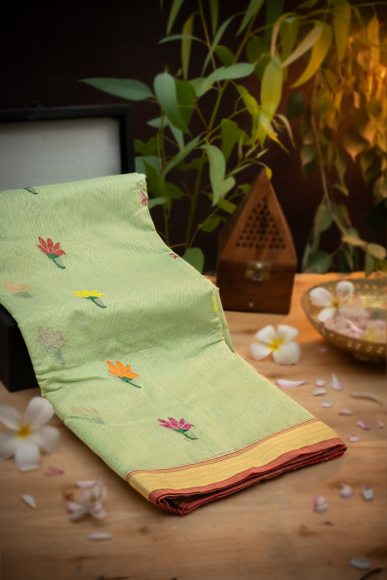 Varamahalakshmi Lime Green & Multi-Colour Chanderi Motifs Saree