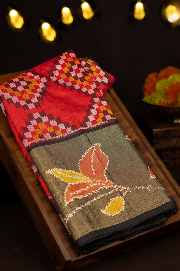 Varamahalakshmi Maroon & Black Ikat Ikat Saree