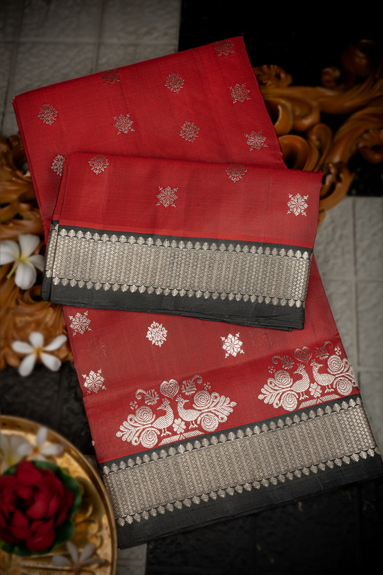 Varamahalakshmi Maroon & Black Venkatagiri Buttis Saree