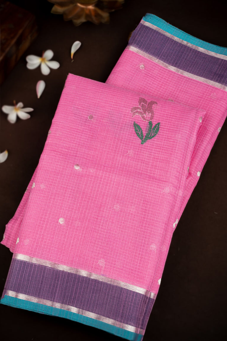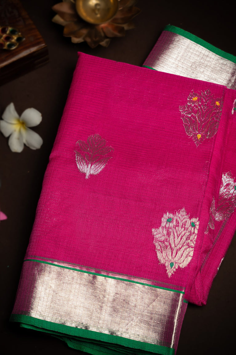 Varamahalakshmi Pink & Green Zari Kota Buttis Saree