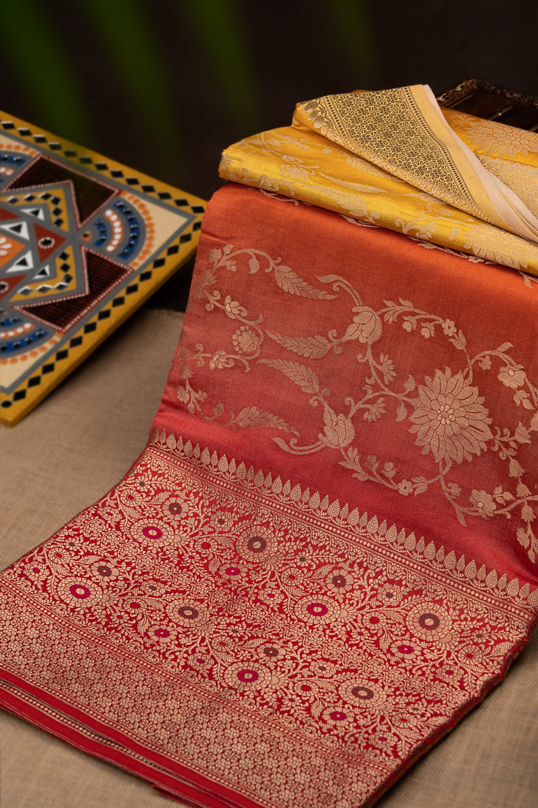Varamahalakshmi Pink & Yellow Brocade Fancy Jaal Saree