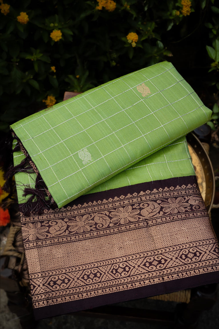 Varamahalakshmi Pista Green & Brown Kuppadam Checks And Buttis Saree